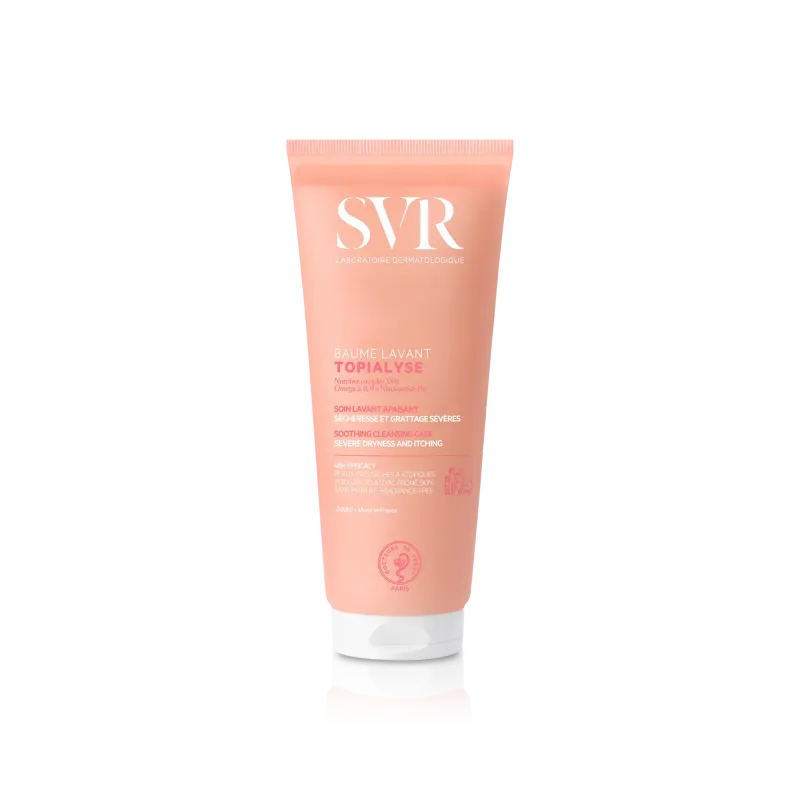 Le SVR Topialyse Baume Lavant 200 ml est un soin nettoyant ultra-doux, sans parfum ni sulfate, conçu pour les peaux très sèches à tendance atopique. Sa formule enrichie en huiles de coton et de coco (riches en omégas 3, 6, 9), niacinamide et sucre prébiotique apaise les démangeaisons, relipide intensément et respecte la barrière cutanée. Sa texture crémeuse offre un confort immédiat dès la douche.